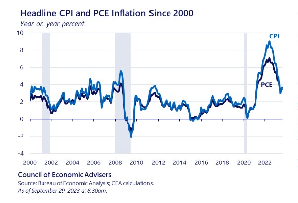 For example, both CPI and PCE measure the price of airfare, but CPI calculates it using a fixed basket of air routes, while PCE calculates it using data on airline passenger revenues and passenger miles traveled.