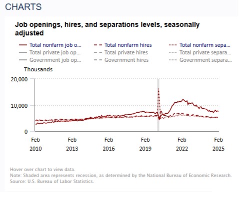 Additionally, the quits rate has dropped to 2%, indicating that fewer people feel confident about finding new job opportunities.