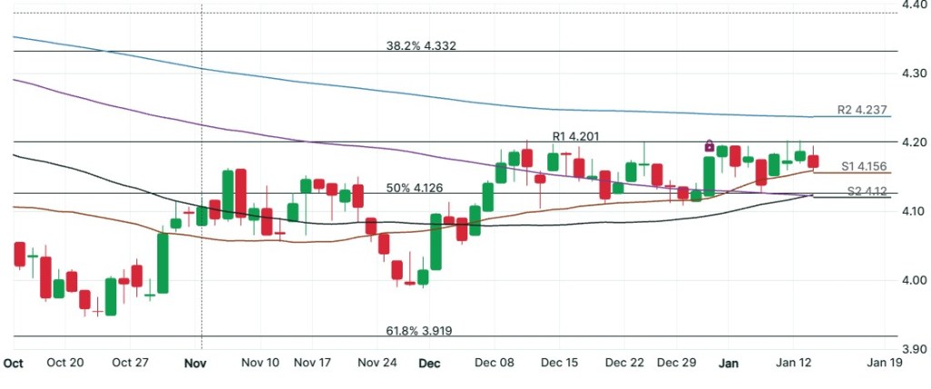 below 10y US Treasury. Up is lower rates, down is higher rates.