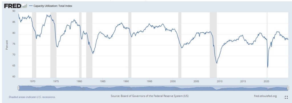 Currently, we are at 77.5%, the lowest since January. While it’s not a bad number, it suggests production is slowing down, and manufacturers are reducing prices to encourage sales.