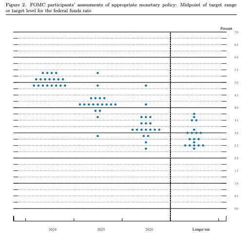 The dot plot below represents each Fed official’s projections for future Federal Reserve interest rates.