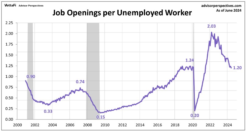 Job Openings to Unemployment ratio: 1.24% vs 1.2%