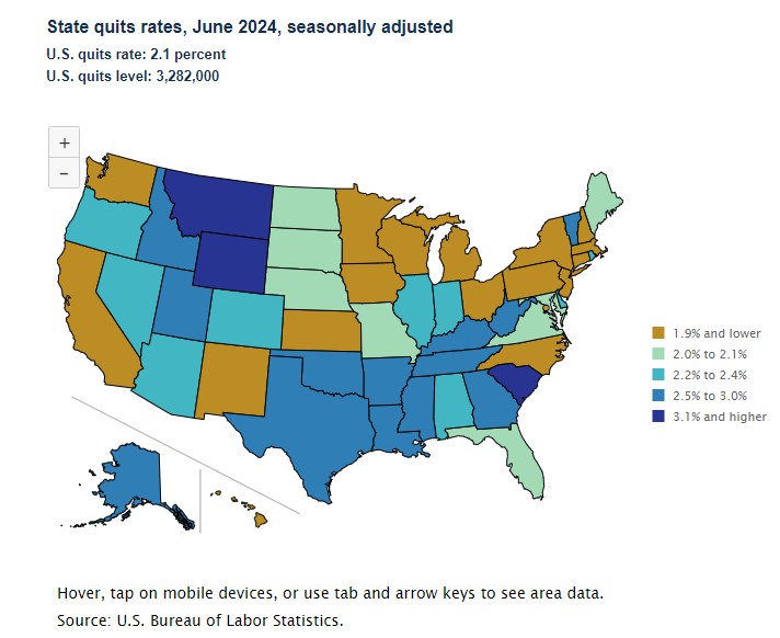 There is other data point within the JOLTS report, the Quit rate. The June report showed the Quit rate fall to 2.1%.