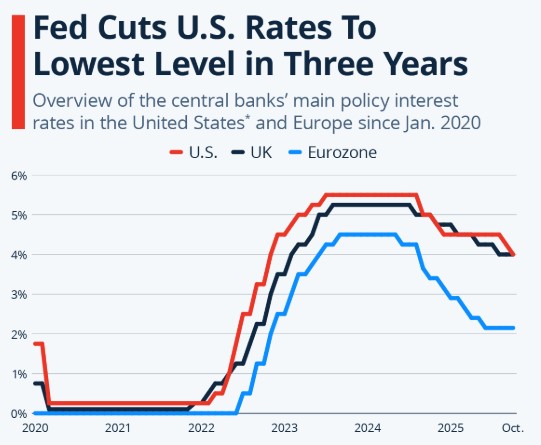 The October rate cut by the Feds was completely overshadowed by Powell’s follow-up comments. He essentially said, “Okay, okay here’s your rate cut… but don’t get used to it.”