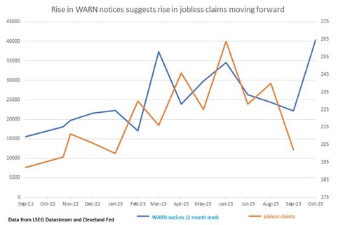 There is a plethora of data to sift through to help focus the lens on the future. I feel like calling my psychic advisor but before I do that, let’s take a look at what a WARN notification is and the graph below.