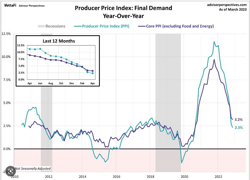 Overall producer inflation increased 0.2%, less than the expected 0.3%. Our year over year has declined from 2.7% to 2.3%. This is huge and very good news. The Peak was 11.7%.