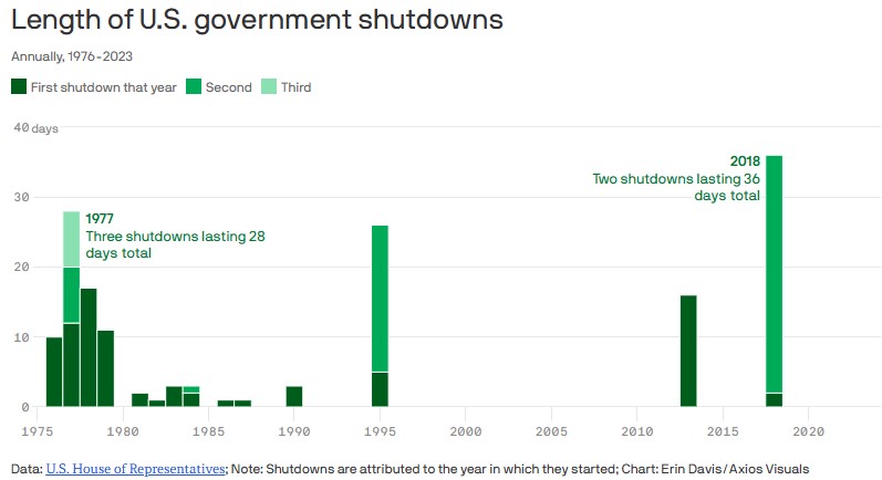 We’ve got a busy week ahead. Bonds are holding their ground for now. Historically, during government shutdowns, bond yields tend to move lower which often translates into lower interest rates.